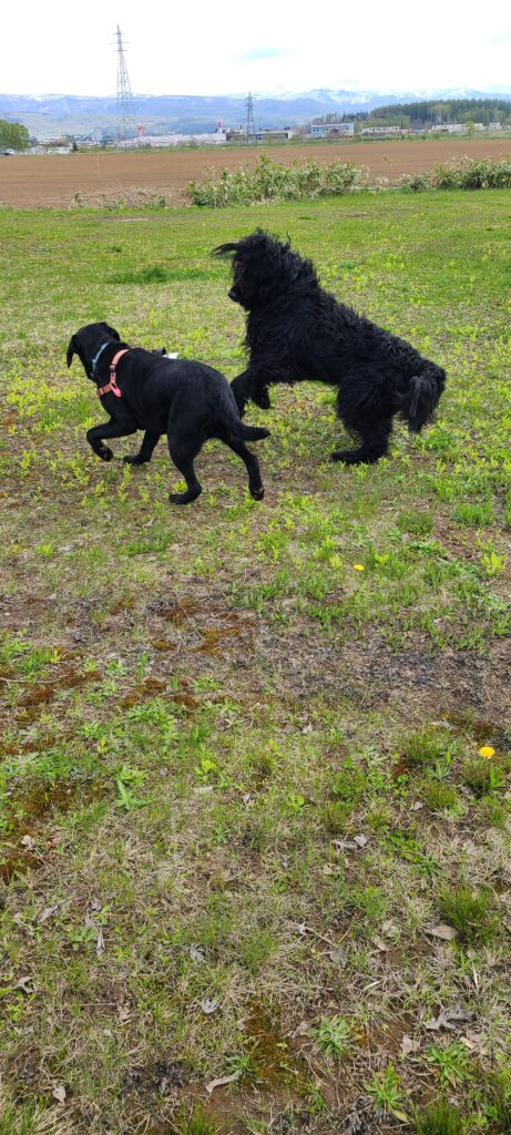 メチャ広くてロイもデュオも大はしゃぎで走りまわって、でかい黒い犬が走って遊ぶ姿は